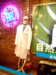 ![]() Klappermann vor Flughafen-Apotheke in Peking sorgt für gute Laune! |