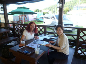 | Nach der Ankunft aus Busan werde ich zu Erfrischung ins Museums-Café eingeladen und von der Museumsdirektorin Kyung Myung Ja herzlich begrüsst bevor ich eine Führung durch das Haegeumgang Theme Museum erhalte. |