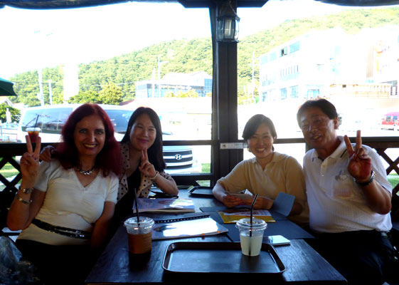 ![]() Begrüssung im Museums-Café: Kyung Myung Ja (Museumsdirektorin), Yu Cheon Ebo (Museumsdirektor) re. und Kim Ji-Woo (Senior Kuratorin) |