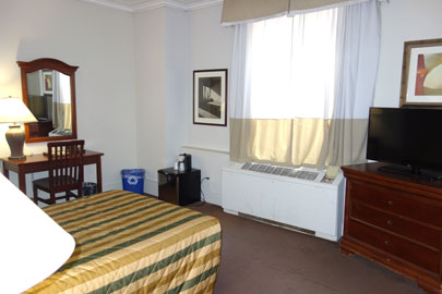 in der 7th Ave. Es ist das viertgrösste Hotel in NYC mit entsprechend grosser Lobby; ständig checken