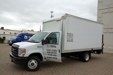 Bestens vorbereitet fahre ich zur Mietwagenfirma, um meinen 14" Truck (14-Fuss-langer LKW) mit Laderampe abzuholen.