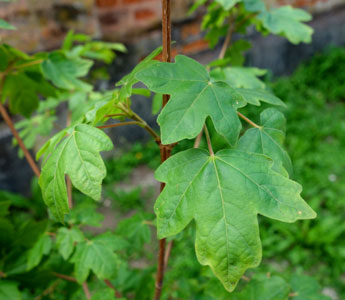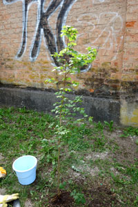 | Vor rd. 2 Jahren ging in einem meiner Blumen-Kisterl ein Feldahorn auf. Nun erreichte er die Höhe von über 1 m, sodass ich ihm mehr Platz für seine Wurzeln geben möchte. Als geeigneten Ort wähle ich die Friedhofsmauer des Jüdischen Friedhofs in München-Thalkirchen wo ihn der Stadtgärtner hoffentlich in der Erde lässt. An dieser Stelle "ziert" Graffiti die Mauer und es wächst fast kein Gras, wo er vor dem Rasenmäher des Gärtners sicher sein sollte. So begrüsse ich ihn nun auf meinem Weg zur U-Bahn-Haltestelle mit "Hallo Kollege!" und giesse ihn bei der aktuellen Sommerhitze, damit er gross und stark wird... Feldahorn-Holz ist wertvoller als Spitzahorn: Es wächst langsamer und wird für Geigenbau verwendet! |