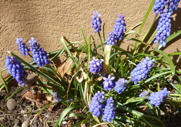 Armenische Traubenhyazinthe an der Hauswand |