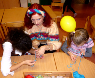 der Leiterin vor, den lieben 6-10jährigen - bei Interesse - das Stricken beizubringen. Einige der Kinder