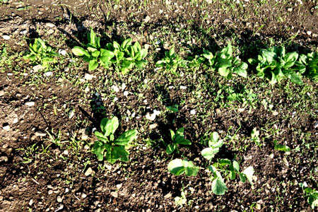 ![]() Erste zarte Spinatblättchen zum Ernten |