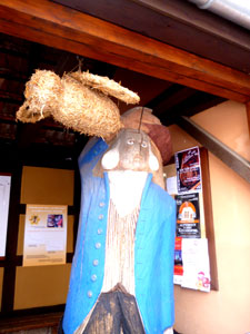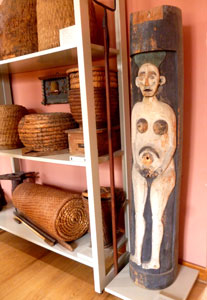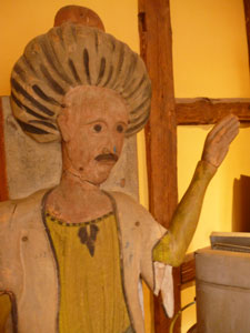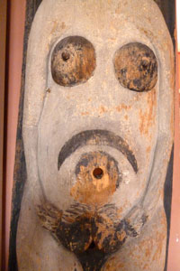 ![]() Detail: Klotzbeute "Nackte Frau" mit Bienen-Einfluglöchern |