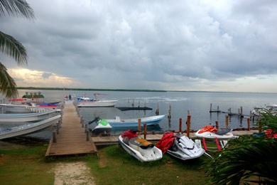 werden muss. Ob es einen Original-Dell-Screen in Cancún gibt? Dann geht's zum Supermarkt, Kaffe für das Maschinchen im Condo kaufen. Auf dem Weg zurück zum Hotel teste ich ein kleines Restaurant an der Lagune gelegen. Graue Wolken ziehen auf, doch der Regenschauer geht schnell vorbei und ich komme trocken ins Hotel. Offiziell ist hier noch Hurrikan-Saison. Nach dem Strandlauf geniesse ich zum Abschluss des Tages die Blaue Stunde am Pool. |