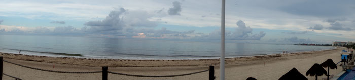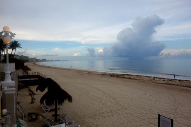 werden muss. Ob es einen Original-Dell-Screen in Cancún gibt? Dann geht's zum Supermarkt, Kaffe für das Maschinchen im Condo kaufen. Auf dem Weg zurück zum Hotel teste ich ein kleines Restaurant an der Lagune gelegen. Graue Wolken ziehen auf, doch der Regenschauer geht schnell vorbei und ich komme trocken ins Hotel - offiziell ist hier noch Hurrikan-Saison, doch ich habe wie immer grosses Glück mit dem Wetter! |