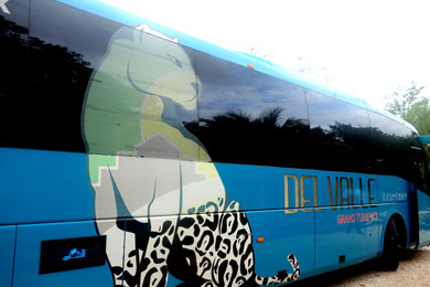 ![]() Viele Touri-Busse sind mit Jaguaren dekoriert |
