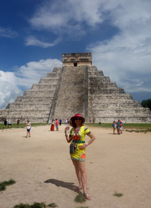 Organhandel gibt, was in den Medien nicht publiziert wird - wäre ja tourismusschädlich. Unsere kleine Gruppe fährt per Bus nach Chichén Itzá. Vorher gibt es Mittagessen, ein schönes Buffet. Obwohl ich Vegetarierin bin (KEIN Fisch, KEIN Fleisch), nehme ich vier Häppchen von Letzterem auf den Teller, da mich eine süsse kleine Miezekatze mit grossen Augen ansieht, die ich damit füttere, in Erinnerung an meine liebe CARMEN, die sich als Strassenkatze in Spanien durchschlug, bevor sie zu mir kam.