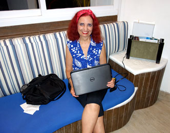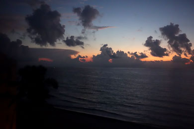 | Nach dem Traumstrand-Tag gehe ich Abends in der Reception online, happy, dass mein kaputter laptop-screen innerhalb von 24 Std. (Dank sei dem Hotel-PC-Mann Rafael Monterrubio Vazquez) am 8. September ausgetauscht wurde. Camila Arnaudo von der Hotel-Reception wünscht sich ein Foto mir mir und ihr Kollege Luis ist auch dabei. Danach noch ein paar Abendstimmungsfotos. |