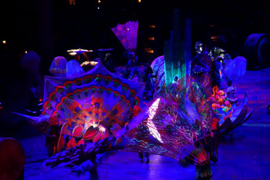 Die Eroberung Mexikos durch die Spanier wird - sogar mit echten Pferden - schaurig-schön inszeniert und mündet in ein klasse Farben- und Formenspiel.