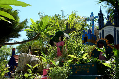 | So bunte, kreative Grabstätten sind eine grosse Freude (pardon!), soetwas sehen zu dürfen. Sie verbreiten durch ihre Farben Leichtigkeit, anstatt festbetonierter Trauer wie bei uns. |