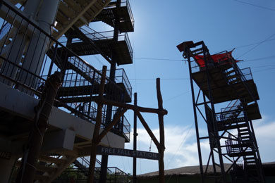 denn von weitem sehe Zip-Lift, wo man an einem Seil frei hängend von einem Turm zum anderen saust!