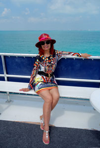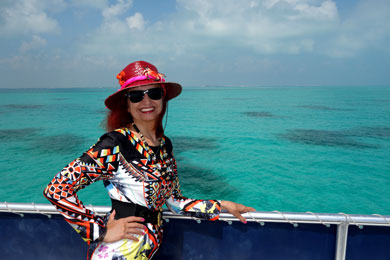 | Es ist eine angenehme Bootsfahrt und oh' Wunder: Der Bootsfotograf macht ein kleines gratis Fotoshooting mit mir. Wegen der starken Sonne wählte ich für den Ausflug ein langärmeliges Kleid anstatt Sonnencreme. |
