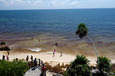 | Tulum mit Meerblick ist ein must have! Zeit zum Baden gibt es hier nicht, aber das macht nichts, denn heute wartet noch ein Cenote, d.h. eine Grotte, in der ich Schwimmen kann. |