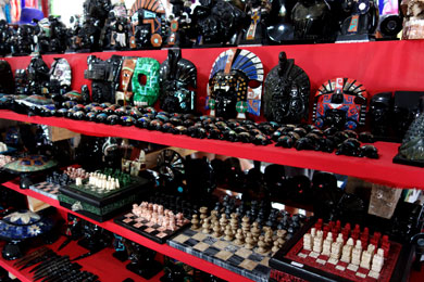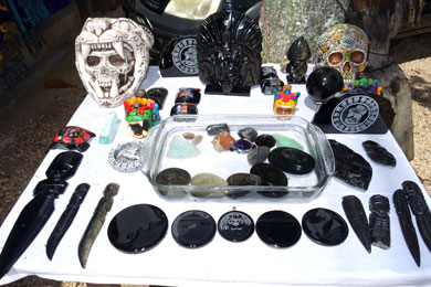 | Zu einem ordentlichen Touri-Ausflug gehört irgendwann auch der Besuch eines Touri-Shops. Wegen meines schweren Gepäcks (anlässlich meiner Ausstellung Neon Paradise in NYC, die der Grund ist, dass ich mir hier zwischen Auf- und Abbau schöne Tage gönne) spare ich wie bei einer Reise zum Mars an Gewicht wo es nur geht, dazu gehört leider auch Shopping. Bei einem kleinen Obsidian-Kroko kann ich nicht widerstehen. |