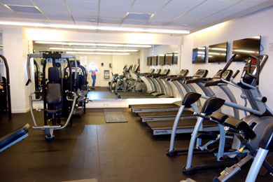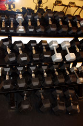 | Zurück im Hotel genehmige ich mir eine Fitnessrunde im Hotel-Gym. Die freien Hanteln sind eckig - im Gegensatz zu den Fitness-Studios bei uns, wo sie rund sind. Zudem gibt es in den USA eine andere Gewichtseinheit, doch ich finde schnell die für mich passenden Gewichte. Einige der Geräte sind mir unbekannt, sodass ich eine Anleitung bräuchte, um sie richtig einzustellen. |
