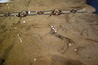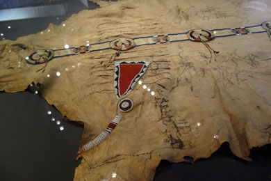 | Apsáalooke Warrior's Exploit Robe: Davon gibt es nur zwei in den USA Ein reicher Amerikaner kaufte sie 1861 von einem Schwarzfuß-Indianer. Es handelt sich um ein bemerkenswertes historisches Dokument. Jede Malerei darauf erzählt eine Geschichte. |