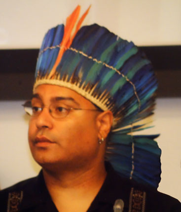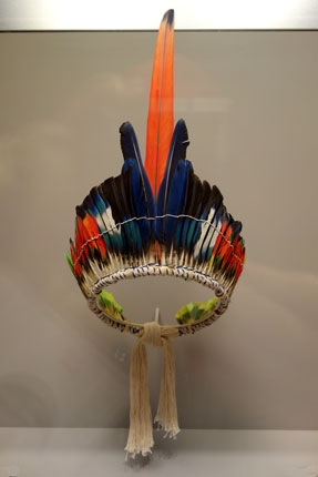| Ich traue meinen Augen kaum: Da sehe ich Federkronen, die meiner - insbesondere auch in der Verarbeitung - absolut ähnlich sind! Vor vielen vielen Jahren erwarb ich diese während einer meiner zahlreichen Brasilien-Reisen. Seit dieser Zeit schlummerte sie in meinem Fundus bis ich sie zur Eröffnung der art3f am 27.11.17 in Brüssel trug. Mit Robert Mucaro Borrero bin ich ja in bester Gesellschaft! |