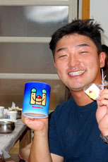 | Das Hallo über meine Gastgeschenke ist gross. Ich freue mich sehr, dass ich diejenigen, die ich noch von vor zwei Jahren kenne, gesund und munter wiederzusehen! Danach wäre ich noch zum Tee eingeladen gewesen, doch ich sage NICHT nein, denn NEIN gibt es in Südkorea NICHT, sondern lasse es offen was besser ist und entscheide mich dann für mein peepart Tagebuch schreiben, wofür man Verständnis hat, denn die Museumsleute haben sicher vor so einer wichtigen Veranstaltung etwas anderes zu tun als mich zu bespassen (denke ich, keine Ahnung, ob das so ist?). Ach ja, in meiner Super location wurde mir auch noch - zusätzlich zu den Essenseinladungen - der Kühlschrank (vegetarisch) aufgefüllt - keine Ahnung wer das alles essen soll? Ablehnen geht ja nicht, siehe oben... |