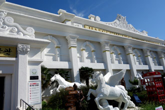 | Genau so, wie ich das Haegeumgang Theme Museum zuhause in München im Sonnenlicht visualisierte, bekomme ich es "geliefert". Das verführt zu kleiner Fototour. Die Vorbereitungen für die Eröffnung des Festivals am 1. September laufen auf Hochtouren, somit verbringe ich den heutigen Tag ohne Führung durch die Museumsleute, zumal ich mich - dank meines Besuches bereits im Jahr 2017 - gut vor Ort auskenne. |
