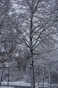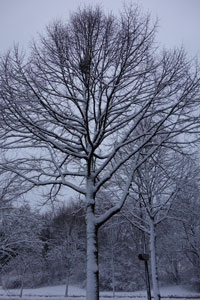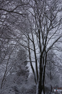 | Dank der Schneemassen hat die Feuerwehr in Bayern alle Hände voll zu tun. Es schneit grosse, dicke, schwere Schneeflocken, die München in ein Wintermärchen verzaubern. Die Baumstämme sind vom Boden bis zur Krone wie mit Puderzucker bestreut. |