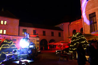 | Im Garten des Bayerischen Nationalmuseums wurde ein kompletter Weihnachtsmarkt aufgebaut. Das Schaumwein Label Chimpansky präsentierte erstmalig ein Winter Wonder Land Fest. Die Kulisse des Nationalmuseums krönt die zauberhafte Deko mit vielen Lichteffekten Hüttenzauber und Strohballen. Für's gute Gewissen: Mit jeder verkauften Flasche unterstützt Chimpanski die Prowildlife e.V. Organisation. Ich schaue nur kurz vorbei, denn meine Auftragsurne "Seelentanz, rundum bemalt, weinrot" wartet auf die Fertigstellung. |