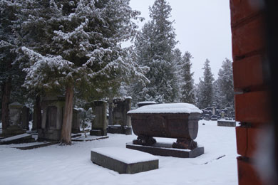 Grabdenkmäler wie mit einer weissen Kuscheldecke dekoriert und