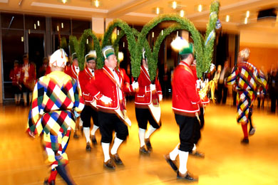 die Tanzformationen; der Kasperl verpasst Zuschauern eine schwarze Nase, ich bekomme auch
