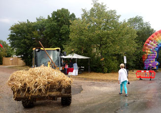 wir in Springen vor dem Eingang zum JUST LOVE Festival die Übergabe tätigen.