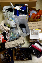 ![]() Von meinen Annahmestellen abgeholte Spenden warten auf's Verpacken |