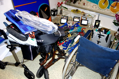 Hörgeräte-Krücken- und sonstigen vorsortierten Häufchen... Ach ja, der liebe Neusprech: "Krücken" mutierten zu "Gehhilfen"! Was sind dann bitte "Gehstöcke"? Die helfen doch auch beim Gehen... Also bleibe ich bei der altbewährten Krücken-Bezeichnung, die klar besagt, was gemeint ist. Mit Neusprech werden nur dieselben Sachen ánders benannt, ändert aber nix an selbigen... und ist obendrein verwirrend: Mein flyer wird deshalb auch künftig für die Abgabe von Krücken werben, so erspare ich mir Erklärungsnot: Auch ein Rollator ist eine Gehhilfe - oder gibt es da eine andere Neusprech-Bezeichnung, z.B. "Gehhilfe mit Rollen"? Da gilt es dann zu beachten, dass es auch "Gehstöcke mit Rollen", gibt, denn so einer wurde mir diesmal gespendet! Der Volksmund sagt: "Warum einfach, wenn es auch kompliziert geht?"
