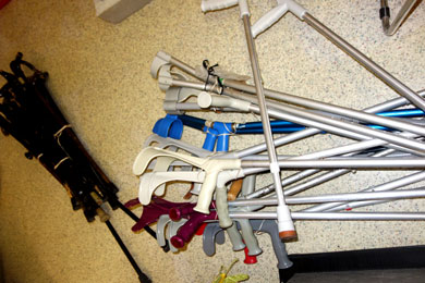 ![]() Erstmalig bringen mir Klosterschwestern Gehstöcke und Krücken vorbei |
