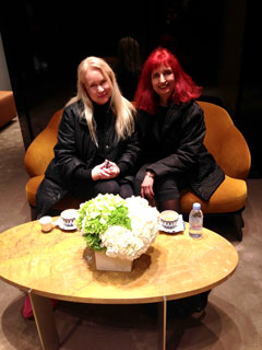 | Nach dem Bata Schuh Museum spazieren wir zum Relaxen zu Hermès und lassen uns im edlen Ambiente erschöpft in die Sessel fallen. Zu unserer Überraschung werden wir gefragt: "Dürfen wir Sie in den Salon zu einer Tasse Kaffee einladen?" Wir nehmen gerne an, denn dorthin werden nur ausgewählte Hermès-BesucherInnen gebeten. Meine Dyson-geföhnten roten Haare hatten wohl etwas dazu beigetragen: Meine liebe Freundin Pat stellte mir so ein "Luxusteilchen" freundlicherweise zur Verfügung. Bei Kaffe und Schoko-Pralinees beschliessen wir, noch bei CHANEL vorbeizuschauen. Ein klassisches Chanel-Jäckchen kostet ja nur schlappe 10.000 € - naja, diesmal kaufen wir nix... Vor dem Nachhauseweg geht es noch zu MAC, um meine Augenbrauen zu stylen. |