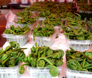 ![]() Farnspitzen? "Fiddle heads" = Geigenköpfe! Schmeckt jedoch lecker! |