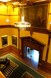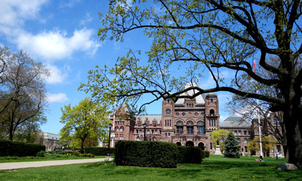 | Die liebe Catlin (Tochter meiner Freundin Pat) arbeitet im Provinz Parlament von Toronto. Es liegt inmitten des Queen's Park, der zu Ehren von Königin Viktoria benannt wurde. Die Legislative der kanadischen Provinz Ontario tagt in diesem ehrwürdigen Gebäude. Heute besuchen wir Catlin, die dort Führungen gibt. |
