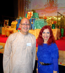 einen Vortrag hält. Zitatanfang: "Das Darshanprogramm umfasst spirituelle indische Musik, heilige vedische Gesänge, inspirierende Reden und natürlich den persönlichen Darshansegen an sich." Zitatende |