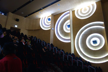 Wir sammeln uns im Vorraum vom 4DFX Theater, wo uns erklärt wird, was uns nun