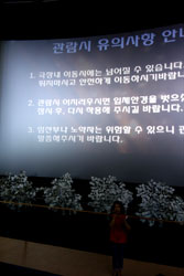 atemberaubender Realität! Zitatanfang: "This is so-called the 4D attraction theater which was built up in Korea for the first time. In the theater, you can have really ddramatic experiences with CG images and the high effects of illumination and sound." zitatende |