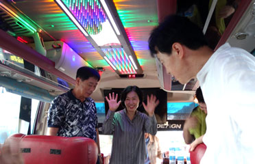 Free English Translation: Our group of artists visit today the unique, traditional old town of Jeonju. Why I'm the only one this morning which appears in the Bavarian dirndl which was asked according to the program: "Wear traditional cloths" amazes me. The other artists are in normal travel outfit; the enlightenment of mine misunderstanding will be done later ... |