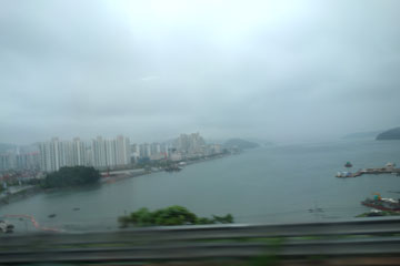 werfen ihre Regenwolken voraus. Trotzdem fotografiere ich vom fahrenden Bus aus