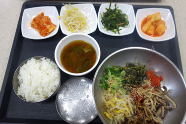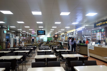 wir auf der Fahrt nach Busan in einem Selbstbedienungsrestaurant ein. Ich bekomme