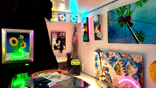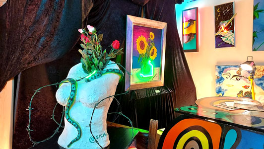 ![]() "Die Versuchung" unter anderem Gipsabdruck mit grünem Neon, Stacheldraht The Temptation" among other plaster imprint with green neon, barbed wire |