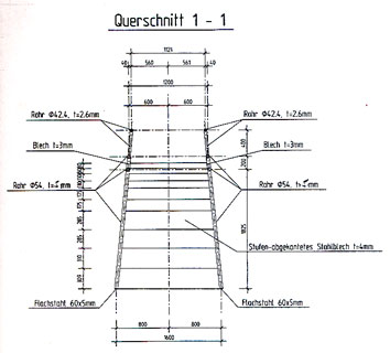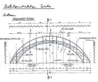 ![]() Auszug aus meiner statisch berechneten Stahlbrückenkonstruktion, catiert 8.1.2001 Extract from my statically calculated steel bridge construction, dated 8.1.2001 |