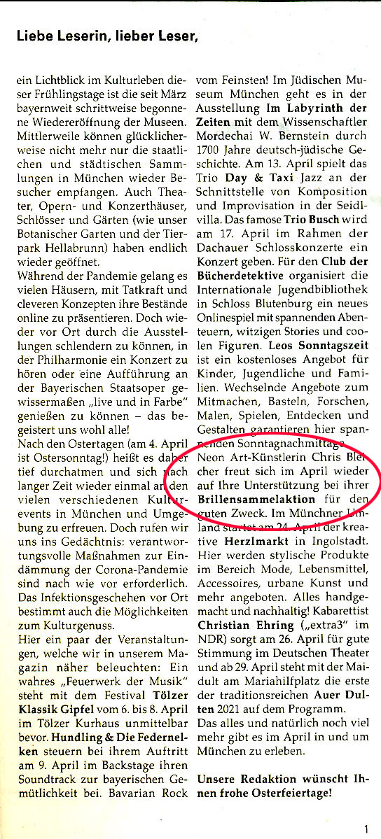 Grosses DANKE an die Redaktion vom Offiziellen Monatsprogramm München für