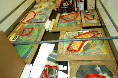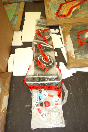 transportieren. Da einige komplexe Neonarbeiten darunter sind, ist ein Einladen in den LKW nur