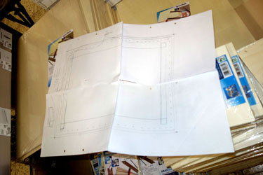 Free English translation Since this is new territory for me, I make a sketch to calculate the exact dimensions: the bar has to be 1.5 cm x 3.5 cm in the format, where I can then cut the appropriate lengths? However, I have no idea whether I can get the very special measure in the hardware store and send prayers "upstairs": The probability that the hardware store has such a measure is almost zero! But my prayers have been answered, I find the right frame moldings and have them cut to size in the woodcut department of the hardware store. This time, too, only thanks to my trade license can I go to the DIY store, which is now banned for private individuals.