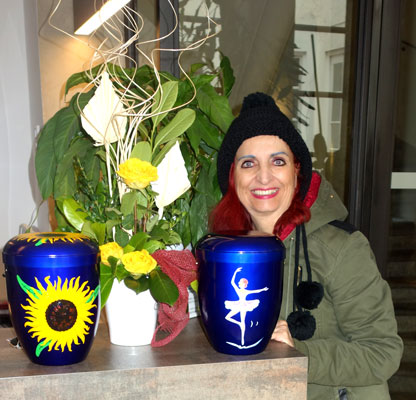 eine willkommene Abwechslung ist. Die Ballerina-Urne ist für eine 97jährige Dame.