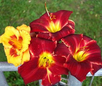 schönsten Lilien über's Geländer´und verschenkt sogar noch